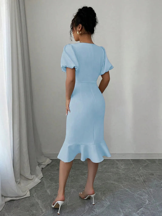 Botanical Print Flutter Sleeve Smocked Waist Dress
