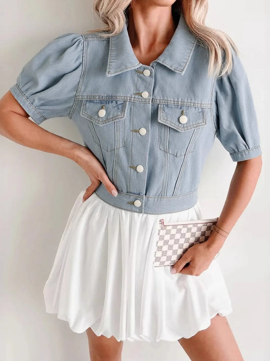 Button Up Removable Hooded Sleeveless Denim Jacket