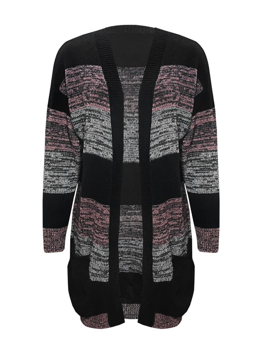 Striped Open Front Long Sleeve Cardigan with Pockets