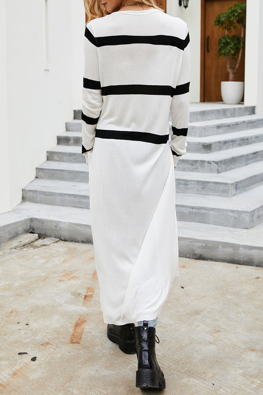 Contrast Trim Button Up Dropped Shoulder Cardigan