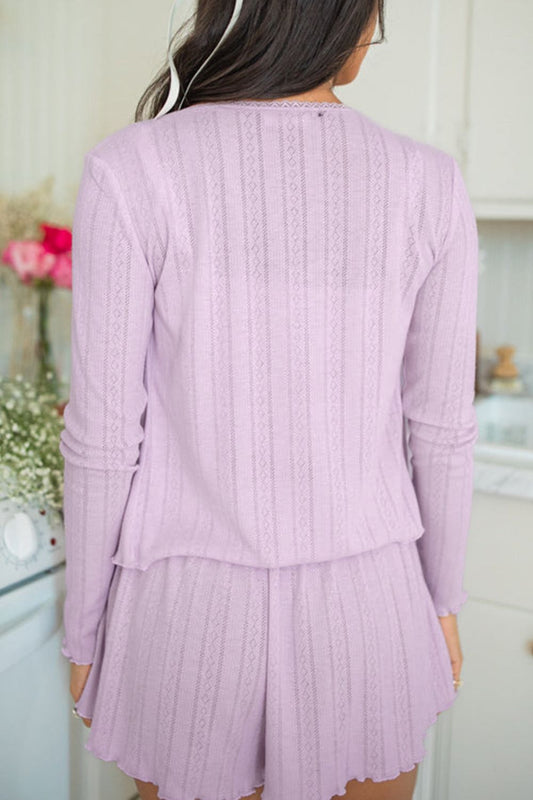 Textured Dropped Shoulder Cardigan and Shorts Set