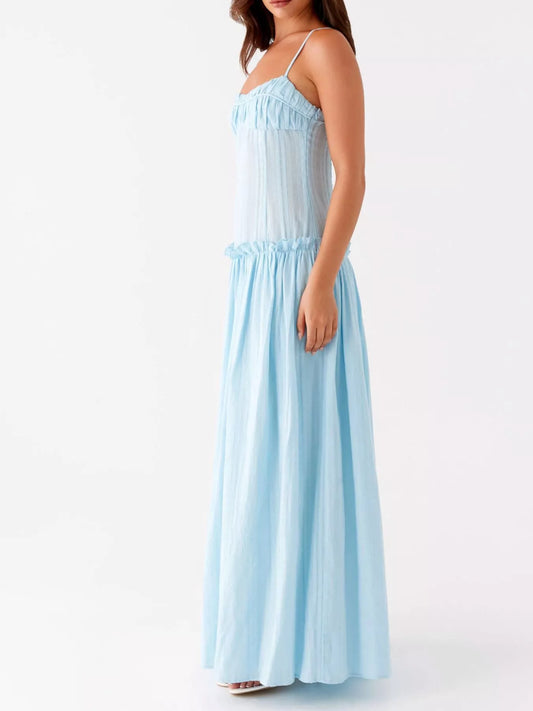 Leopard Sweetheart Neck Flounce Sleeve Maxi Dress