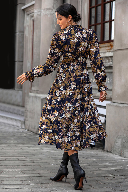 V-Neck Lantern Sleeve Ruffle Hem Dress