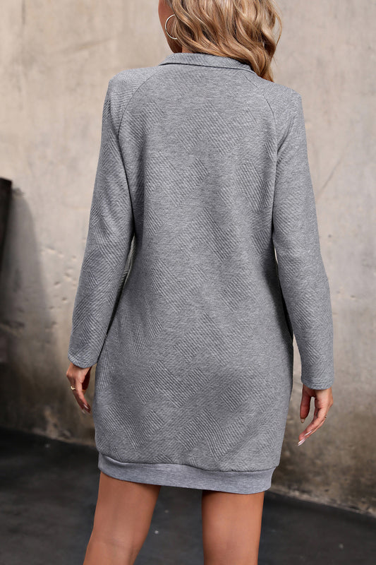 Plus Size Houndstooth Long Sleeve Slit Dress