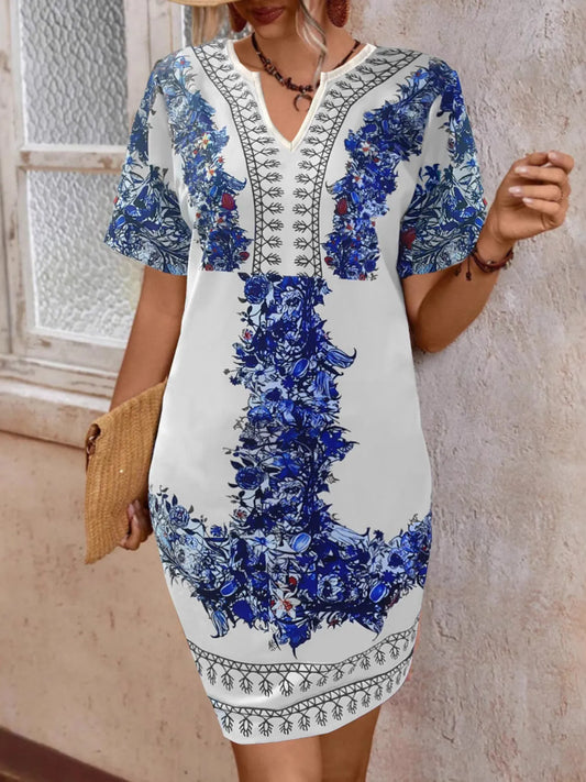 Floral Notched Short Sleeve Dress