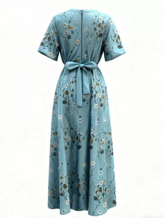 Plus Size Floral V-Neck Short Sleeve Maxi Dress