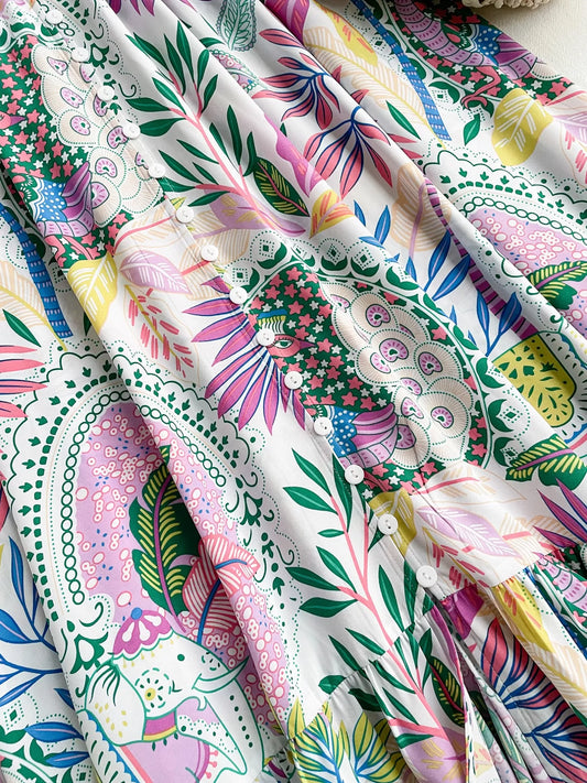 Plus Size Printed V-Neck Long Sleeve Midi Dress