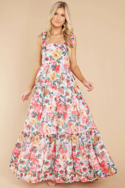 Plus Size Printed Short Sleeve Tiered Maxi Dress