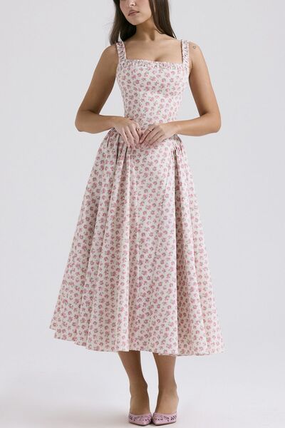 Ruffled Hem Printed Short Sleeve Mini Dress