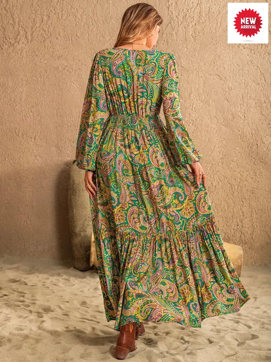 Tie Front Round Neck Long Sleeve Maxi Dress