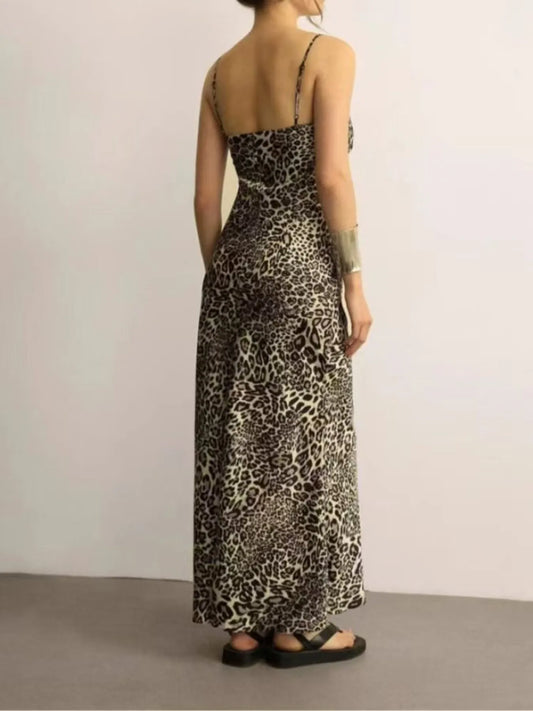 Tiered Lace Up Spaghetti Straps Maxi Dress