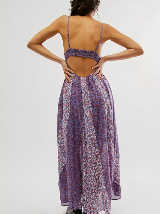 Smocked Printed Spaghetti Strap Maxi Summer Dress