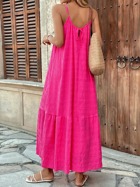 Tie-Dye V-Neck Maxi Dress with Flowy Sleeves