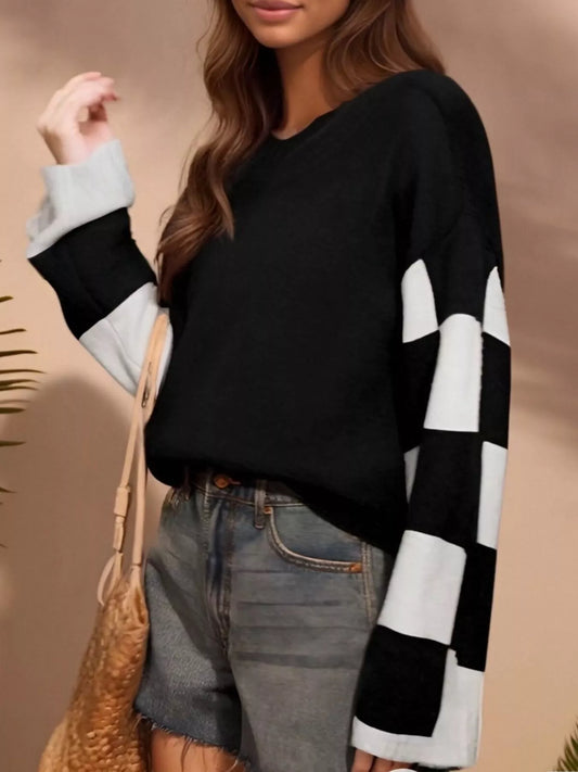 Color Block Turtleneck Drop Shoulder Knit Sweater