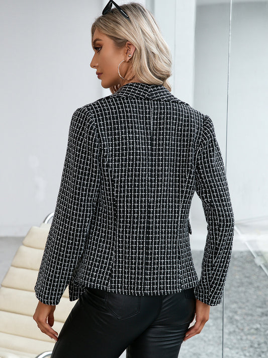 Plaid Double Breasted Long Sleeve Jacket