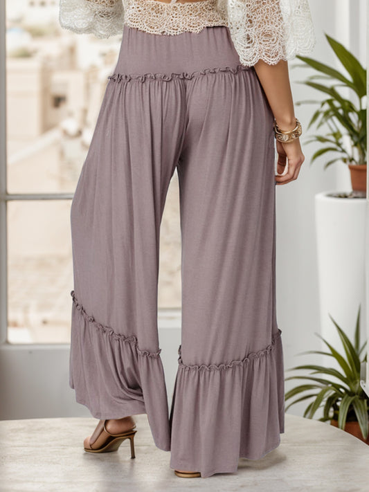 Wide Leg Ruffle Trim Pants