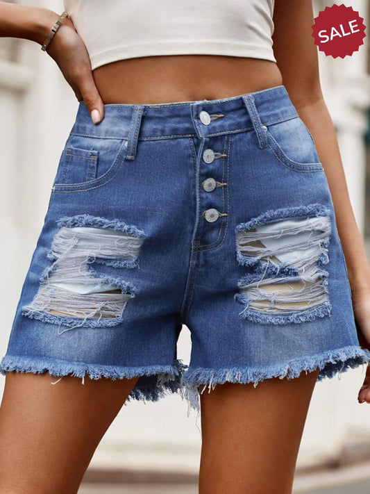Raw Hem Distressed Denim Shorts