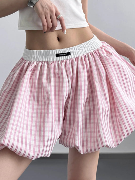 Multicolour Checkered Drawstring Elastic Waist Casual Shorts