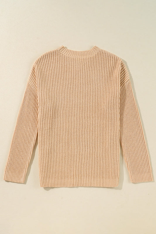 Contrast Round Neck Long Sleeve Oversize Sweater