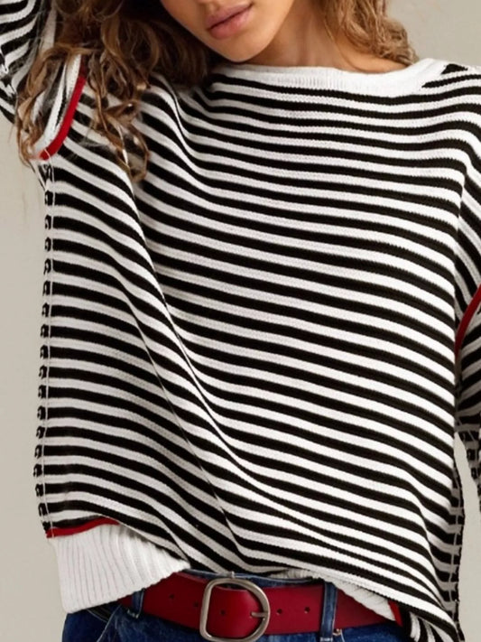 Stripe Striped Ribbed Edge Drop Shoulder Sweater
