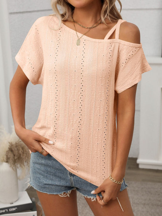 Eyelet Asymmetrical Shoulder Short Sleeve T-Shirt