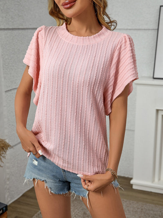 Devine Swiss Dot Round Neck Crochet Short Sleeve Top