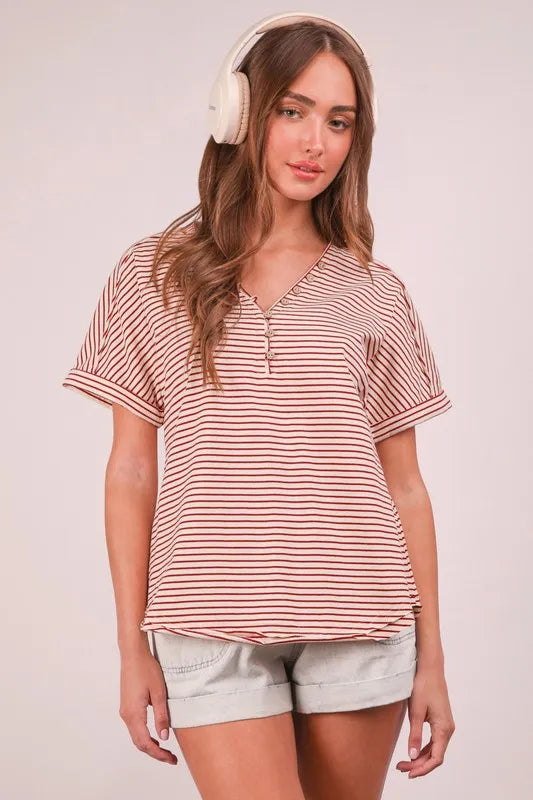 VERY J Striped V-Neck Short Sleeve T-Shirt