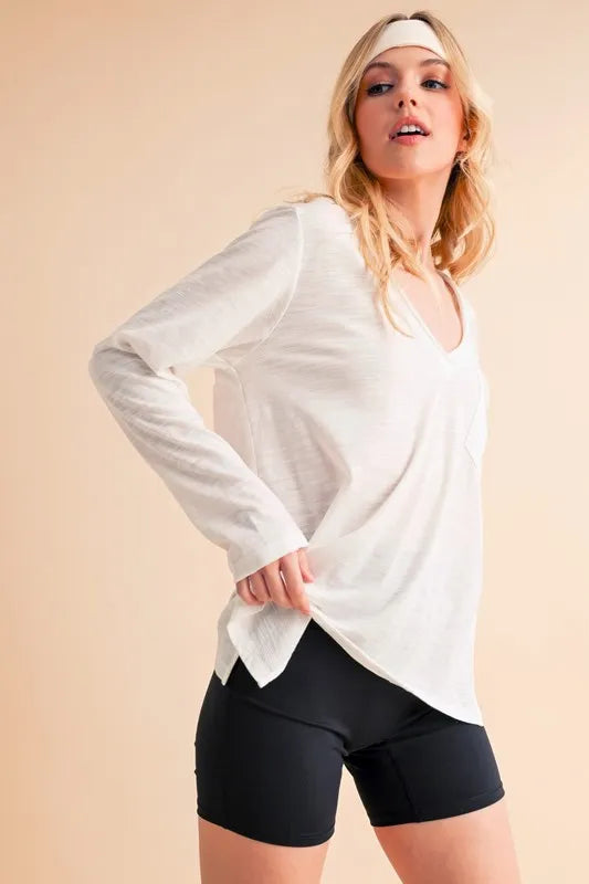 VERY J Mineral Washed Ribbed Knit Casual Top