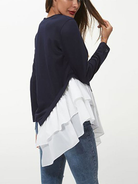 Tiered Contrast Round Neck Long Sleeve T-Shirt