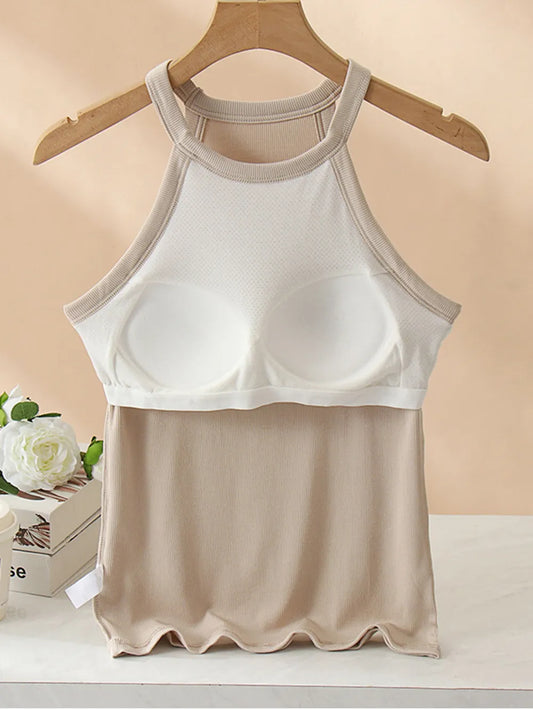 Ribbed Grecian Neck Cropped Tank with Chest Pads