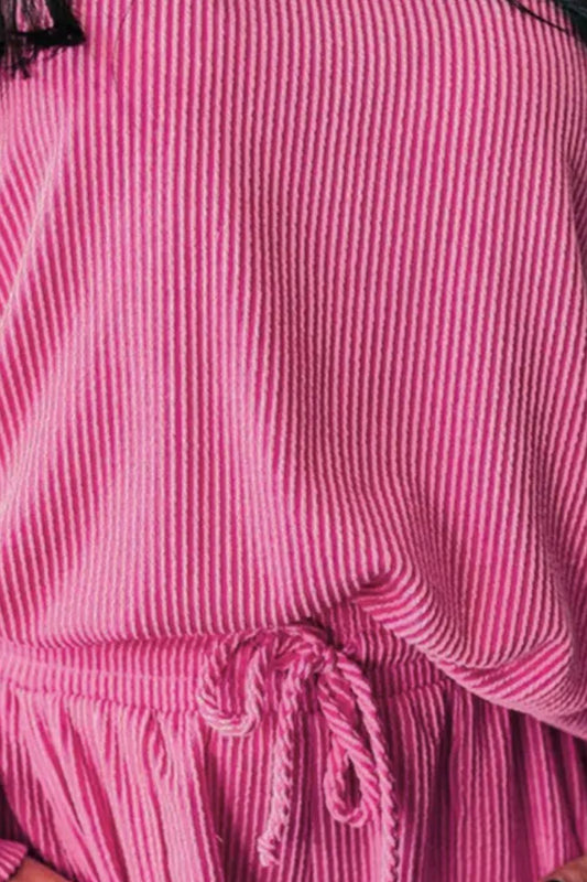 Textured Long Sleeve Top and Drawstring Pants Set