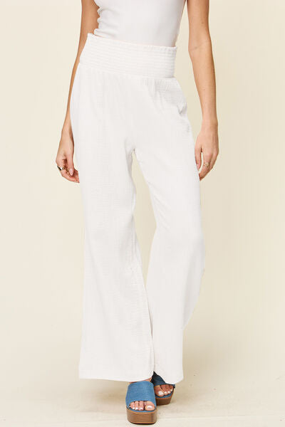 Double Take Full Size Texture Smocked Waist Wide Leg Pants