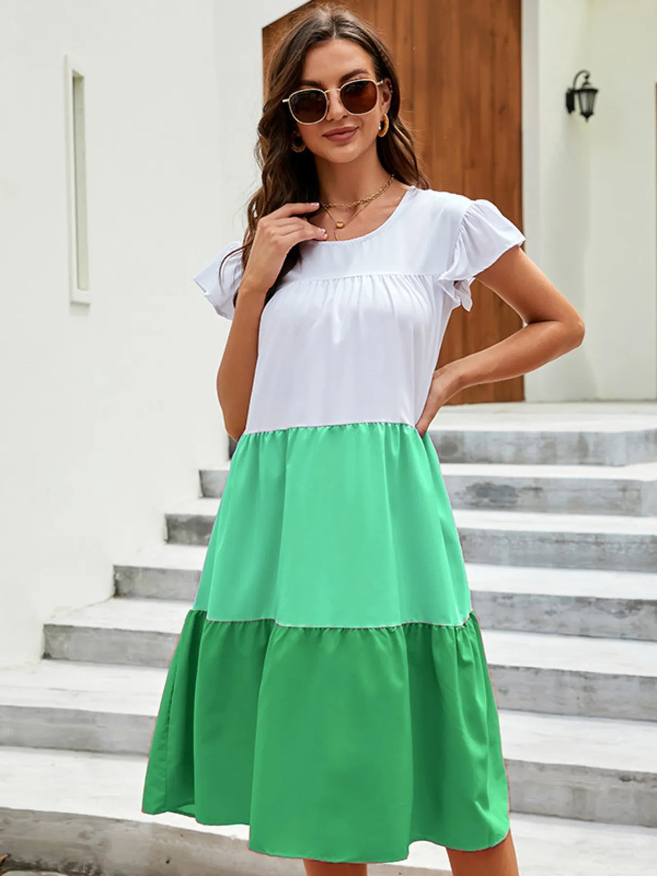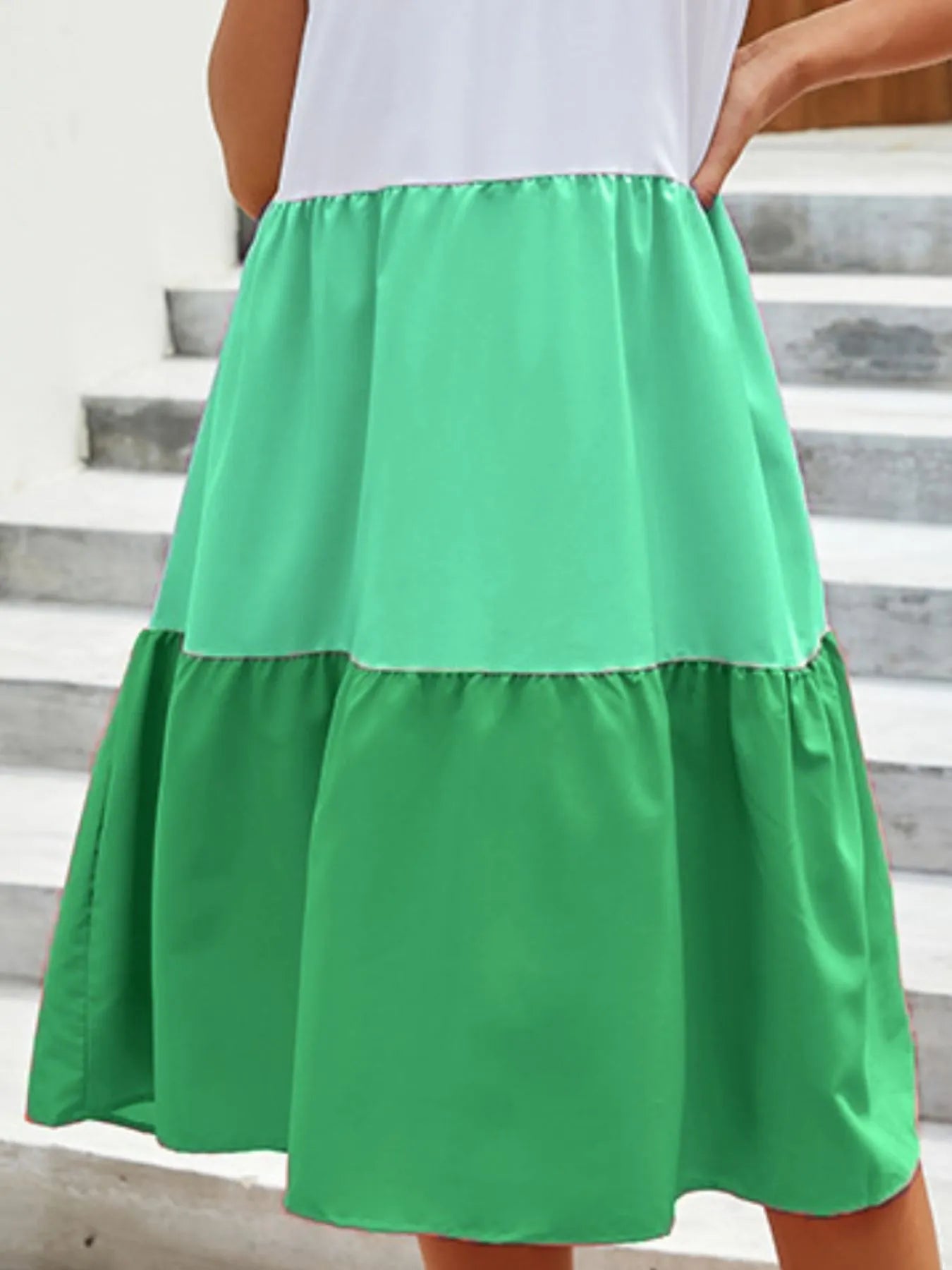 Full Size Color Block Tiered Ruffle Summer Dress Plus Size